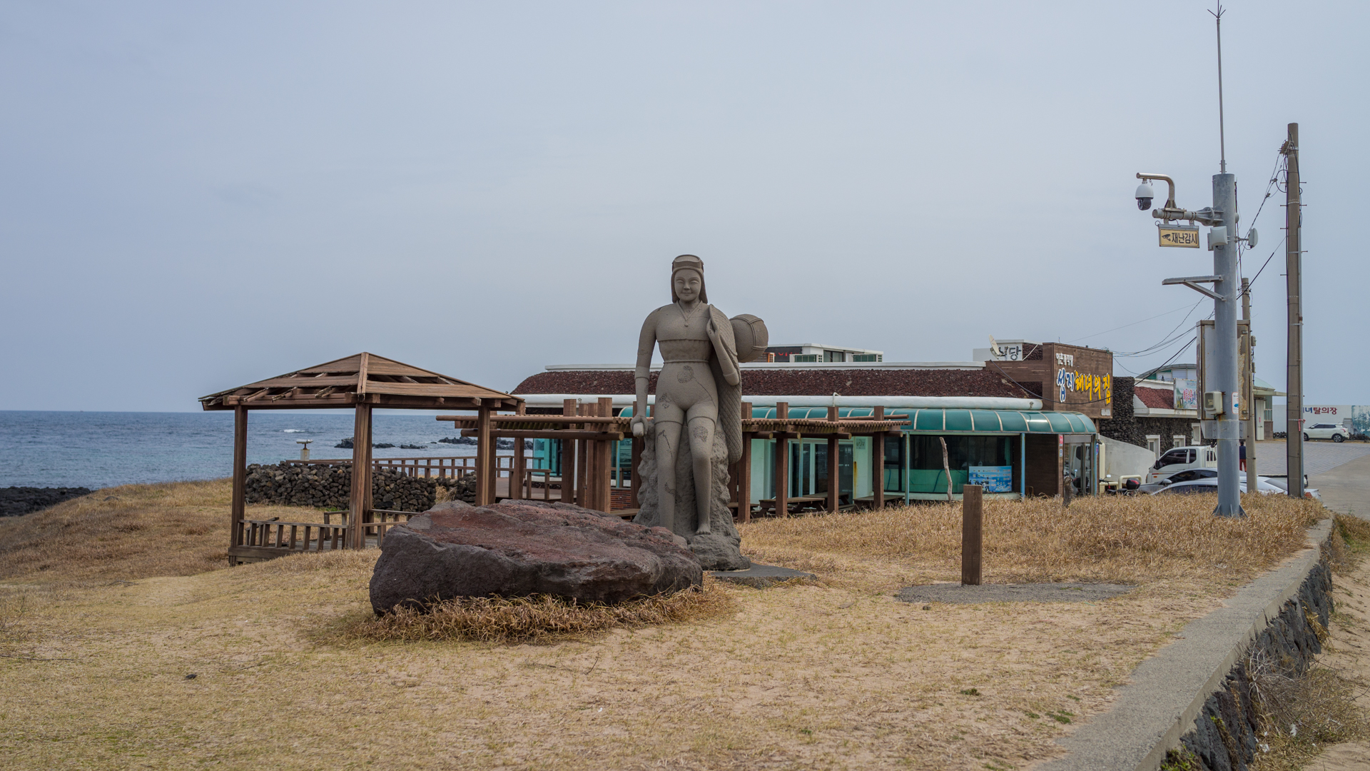 그래봐야 이 동네고, 별로 헤맬 곳도 아니기에 리조트 주차장 구경이나 하고 제대로 들어온 뒤 해녀상 앞에 주차를 하고 가게로 향한다.