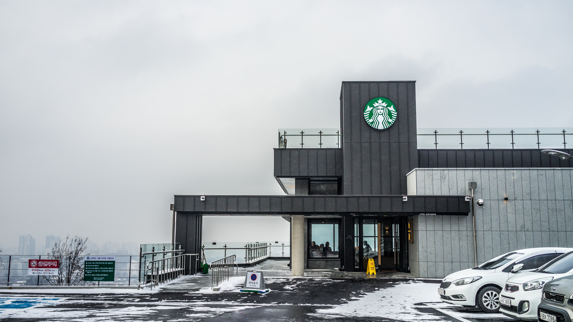 회사 동료에게 추천받은 '이디야커피 의암호점'에 가려다가, 어차피 이 날씨에는 아무것도 안 보인다는 말에 새로 개업한 '스타벅스 리저브 구봉산점'에 들렀다.