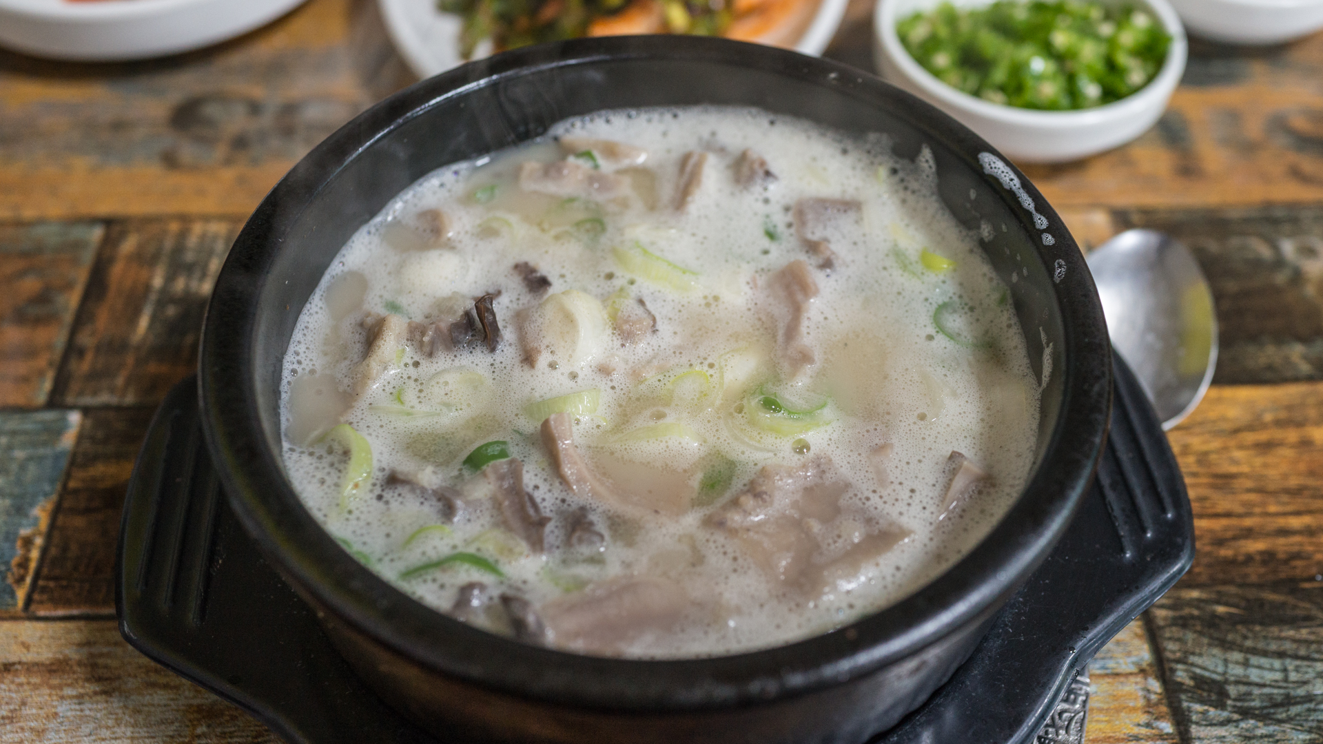 듬뿍 들어있는 고기와 뽀얀 국물.