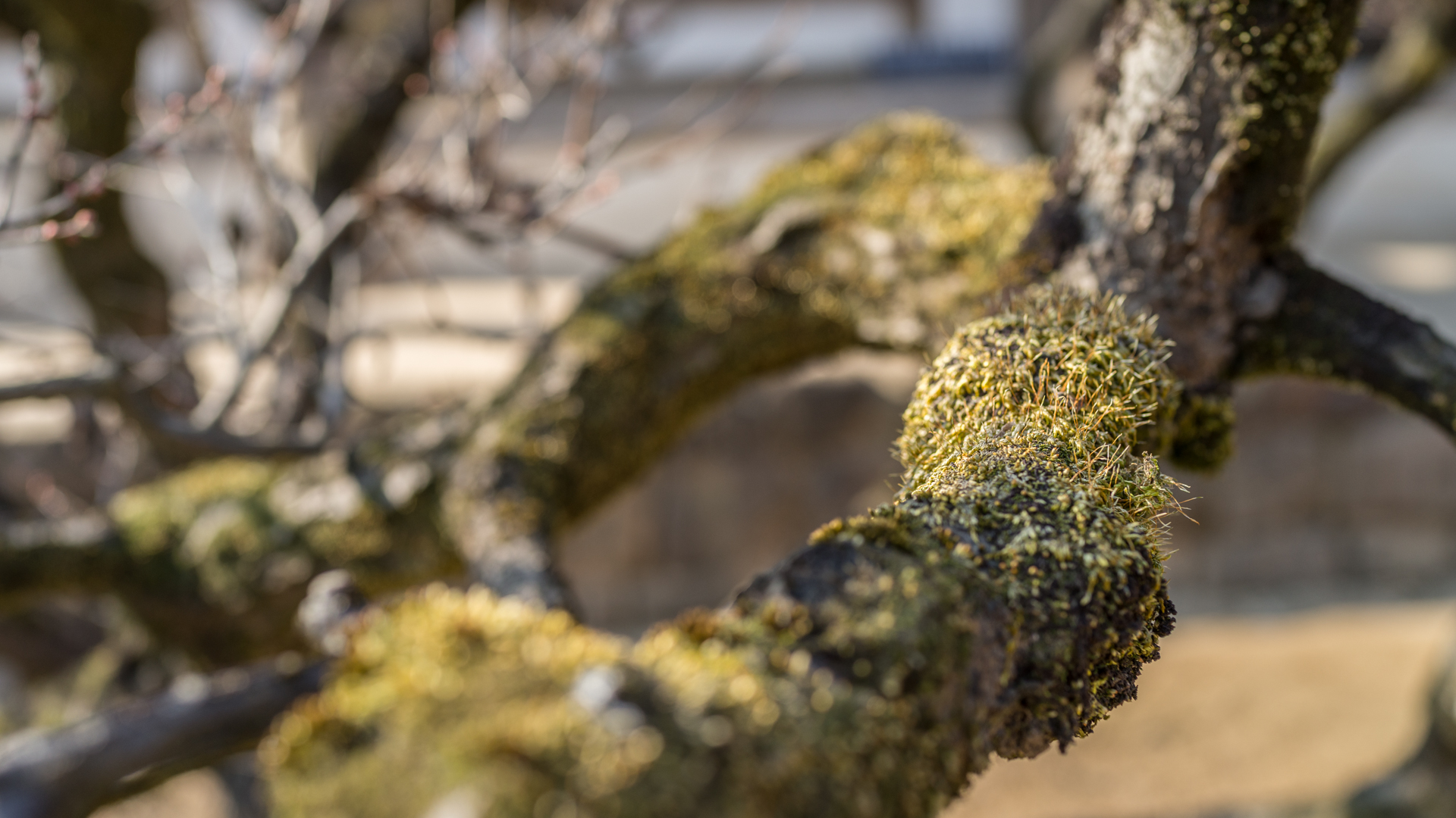 기와에 잔뜩 낀 이끼, 그리고 햇빛을 받아 생기는 음영과 질감.