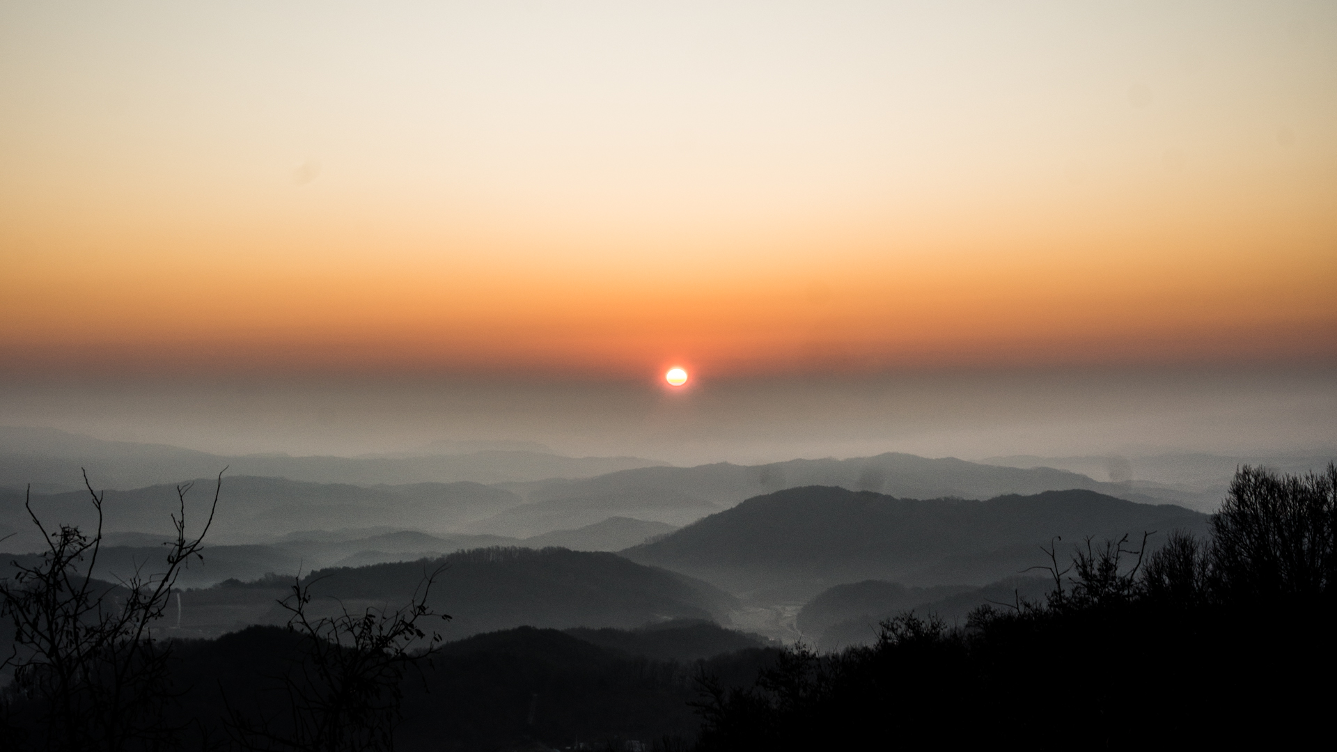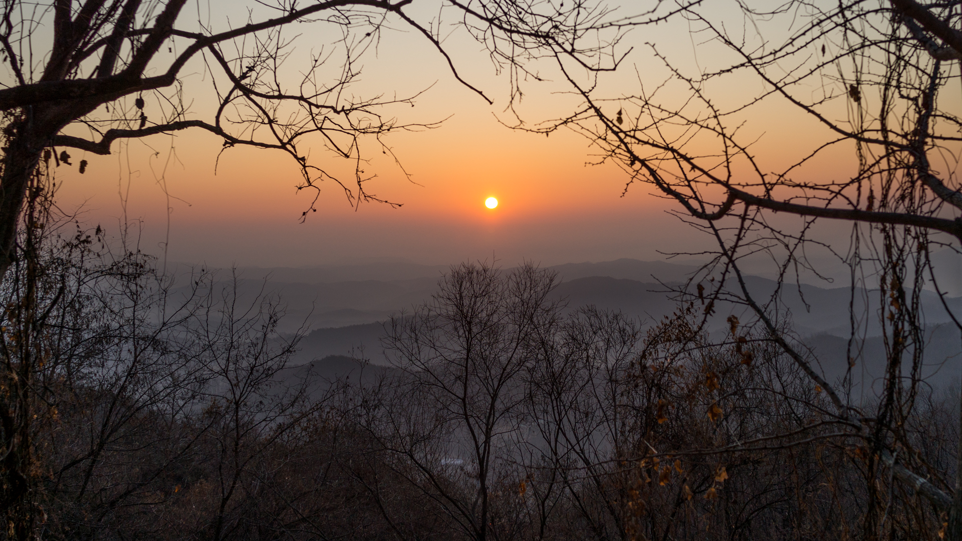 차를 멈추고, 공사중이던 임도로 들어가서 해가 뜨는 방향을 보니 저 멀리 해가 올라오고 있다.