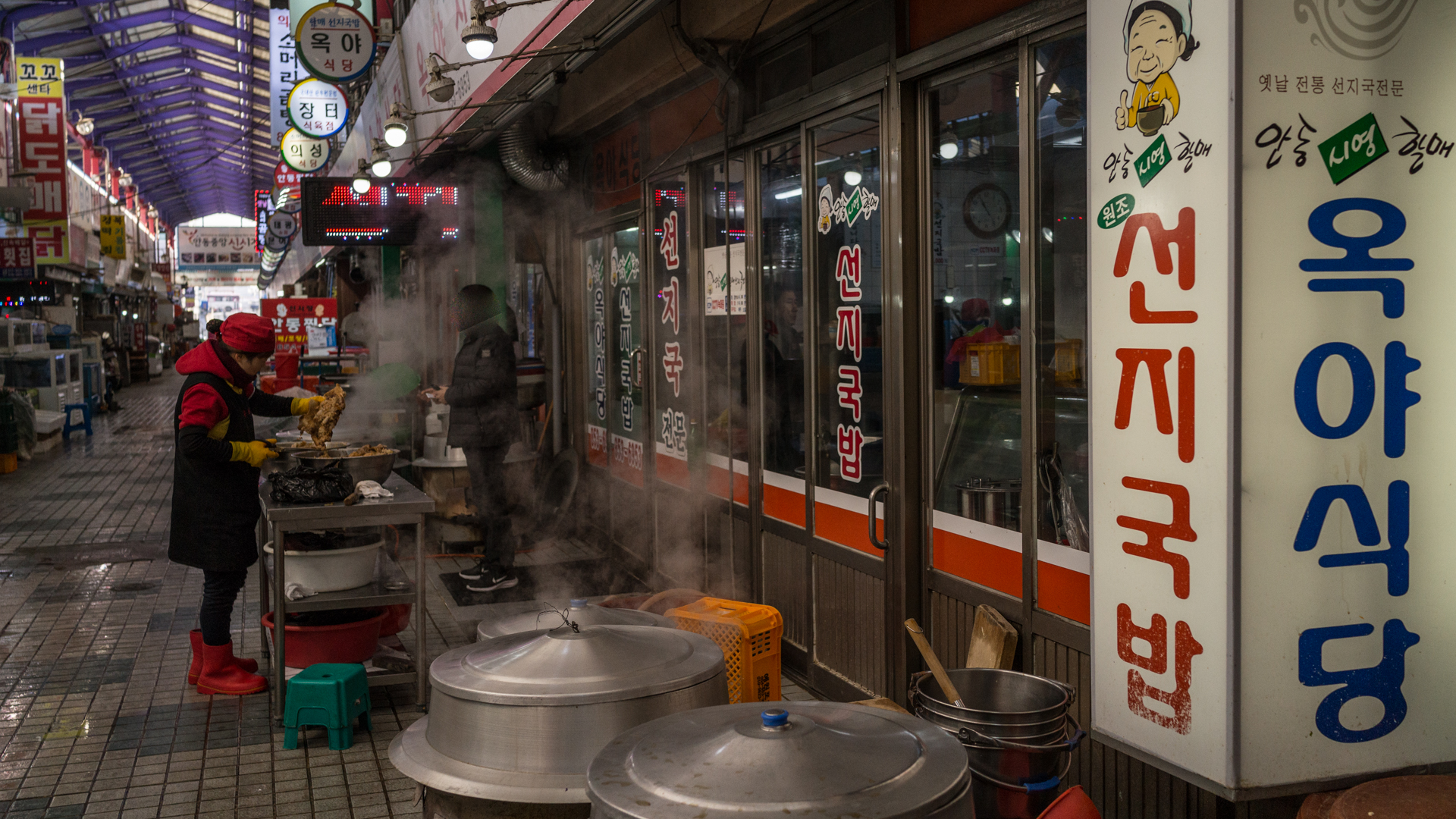 시장에 들어서니 줄지어 국밥집이 있는데, 그중에 가게 앞에서 선지를 팔팔 끓이던 모습에 현혹돼 여기로 결정이다.
