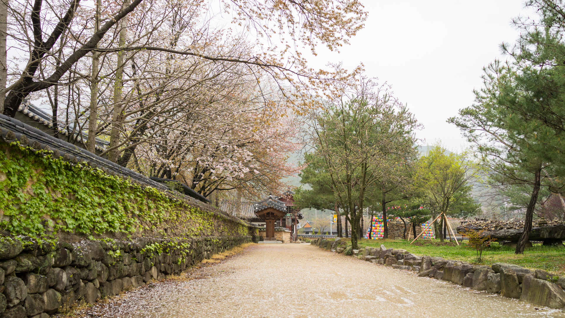 큰길에서 절의 입구까지 이어지는 길은 빼곡히 벚꽃이 심어져 있는데, 제때 왔으면 정말 흐드러지게 아름다웠을 성 싶다.