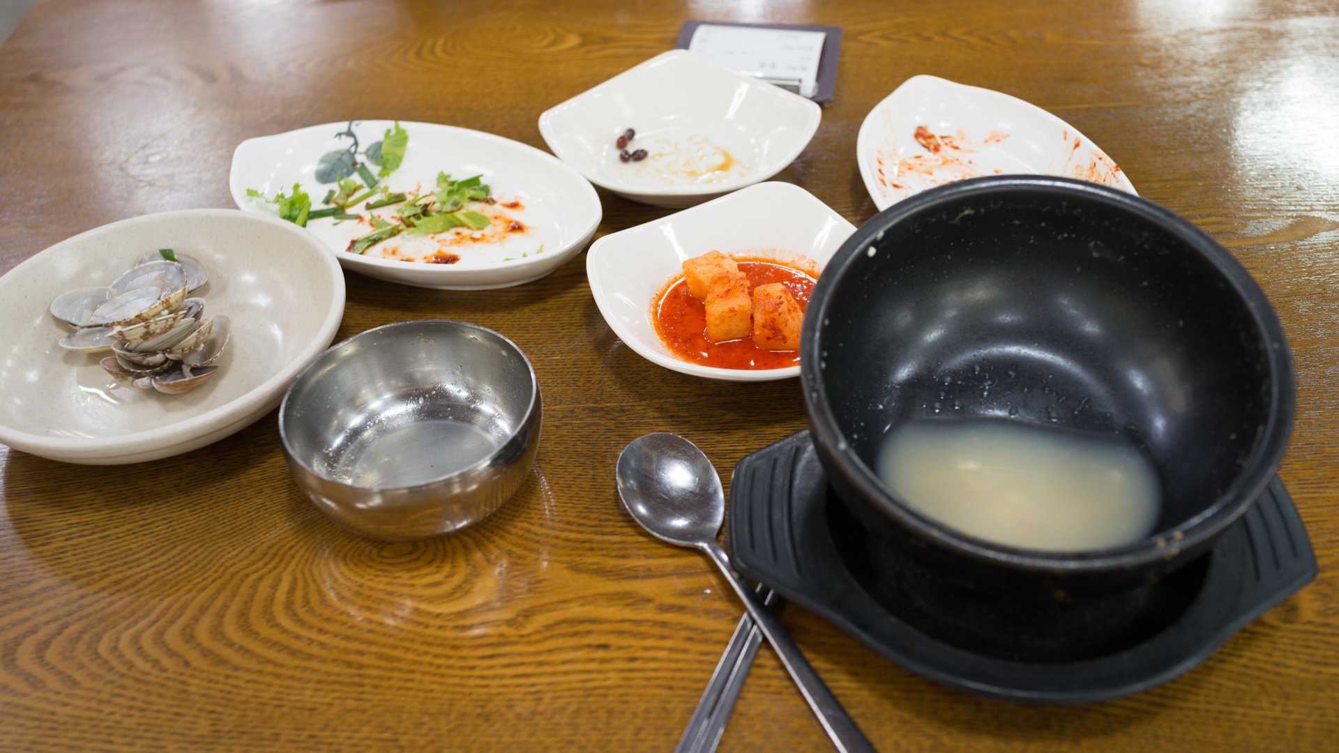 매콤하게 하는 순두부찌개는 강릉에서 충분히 맛있게 먹어왔으니, 이번엔 맑은 국으로 시켜보자.