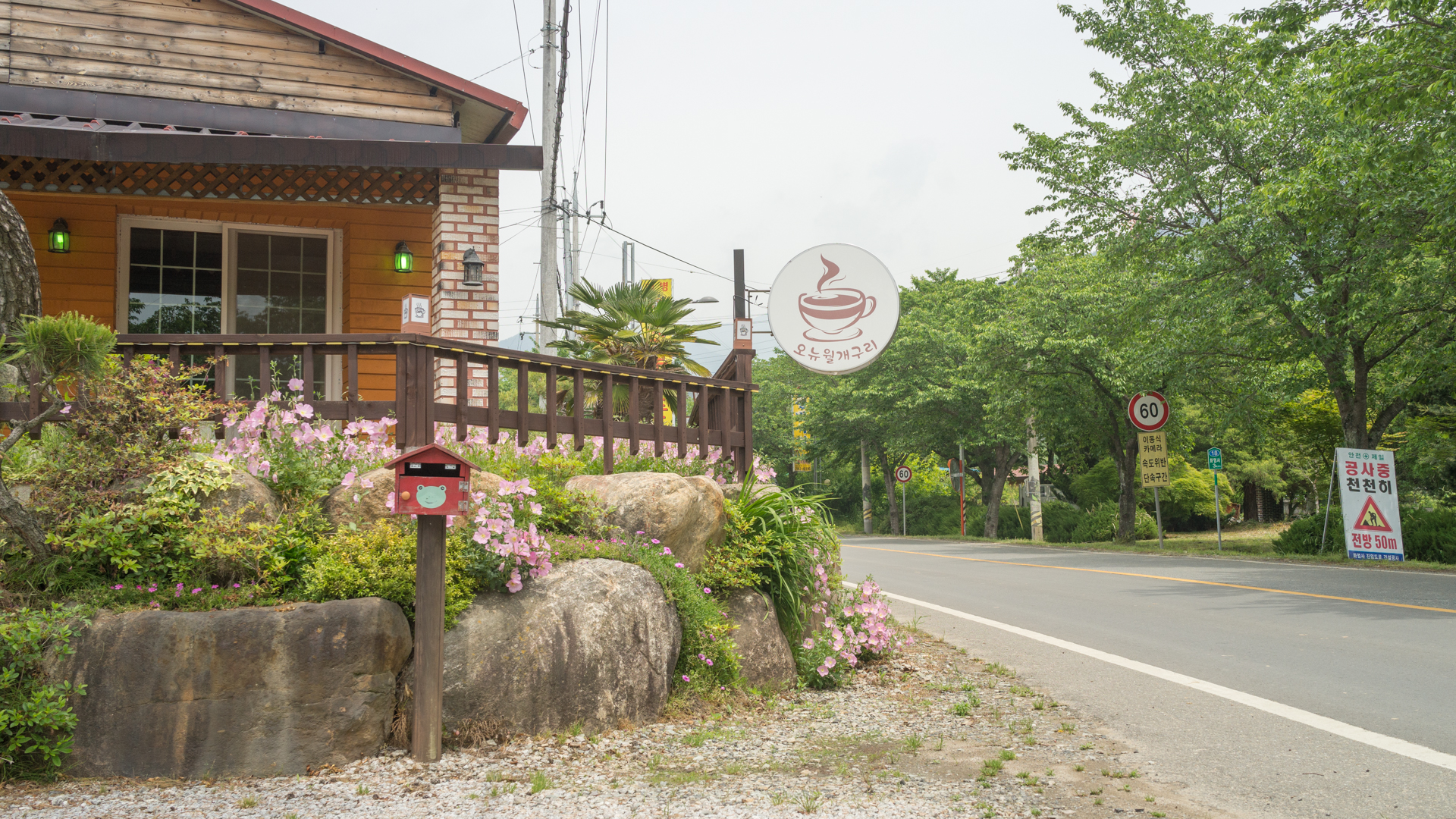 구례 읍내를 지나 화엄사로 향하는데 어김없이 식곤증이 몰려와서 길가에 있는 카페에서 잠시 쉬기로 한다.