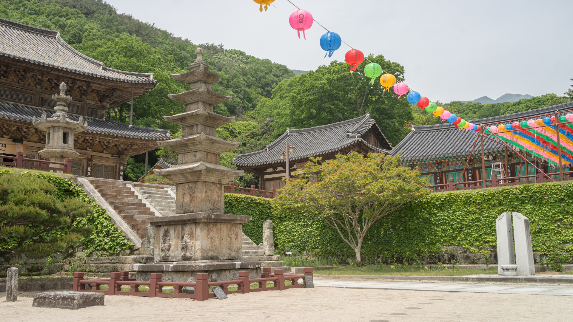 아쉽게도 화엄사의 상징과 같은 사사자삼층석탑은 내년까지 보수공사가 한창이다.