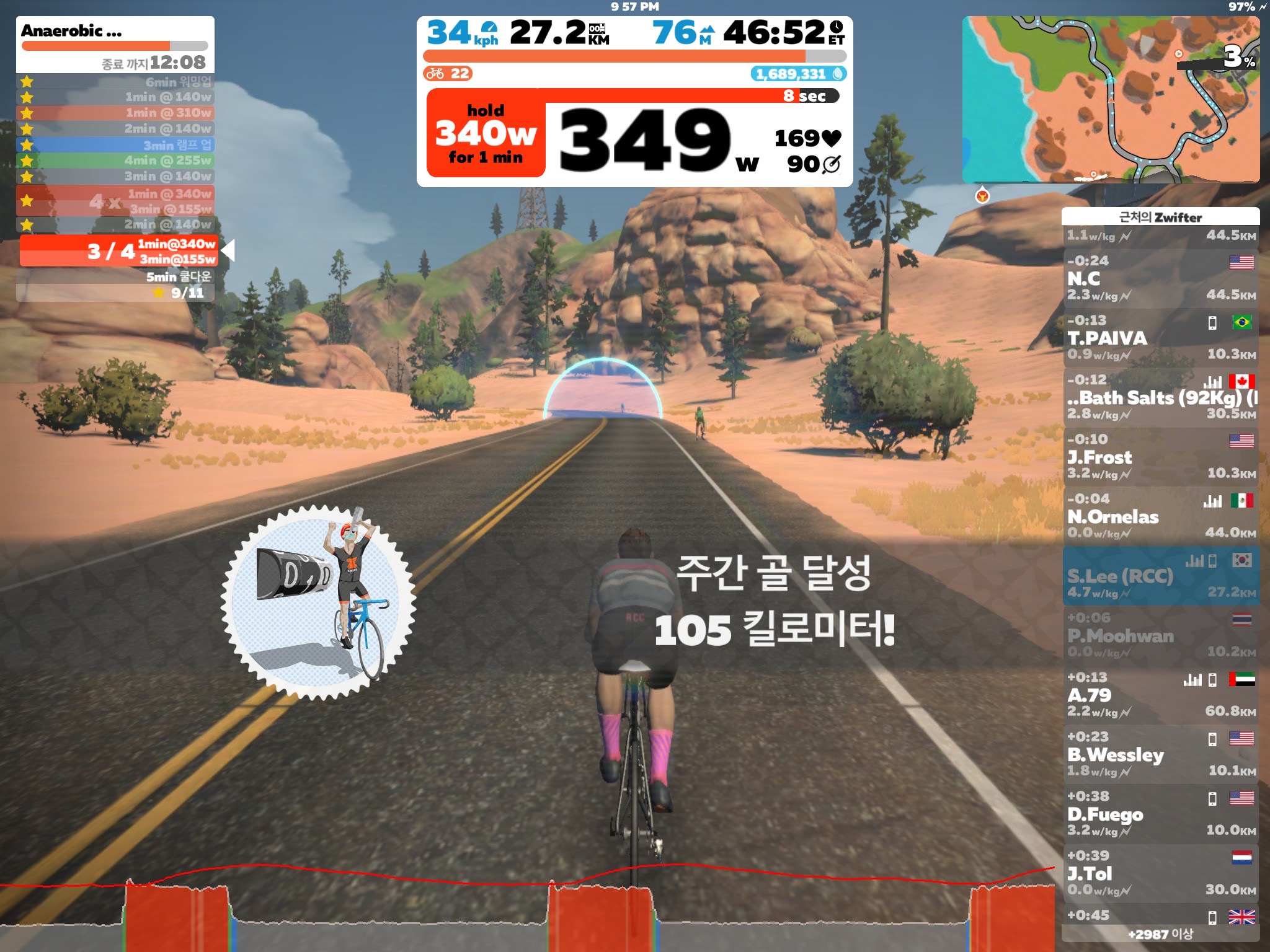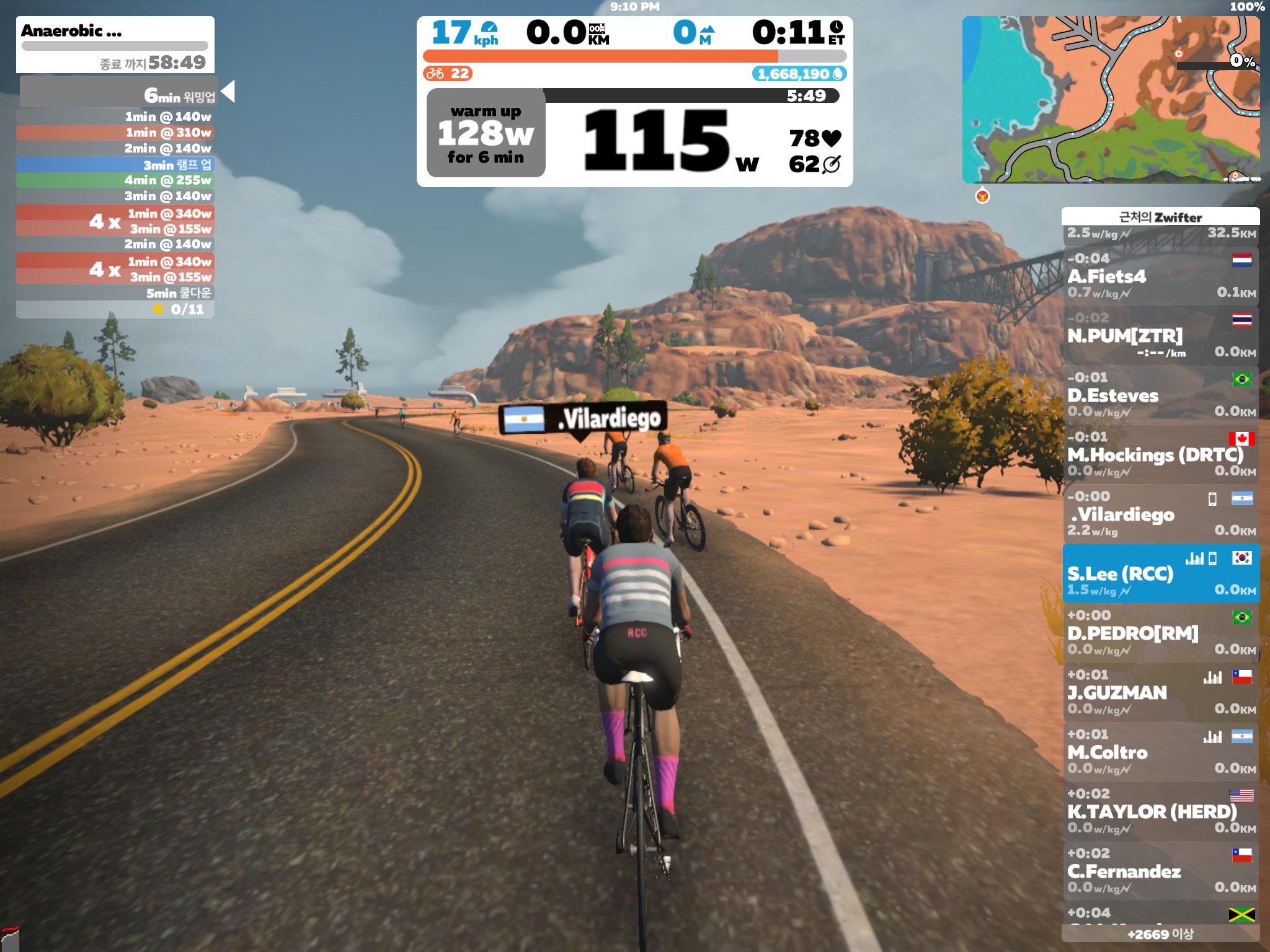 뭐가 다르지, 점심에 마신 와인 때문인가 싶다가 문득 인터벌 휴식이 15W 늘어난 게 원인이 아닐까 싶어 집니다.