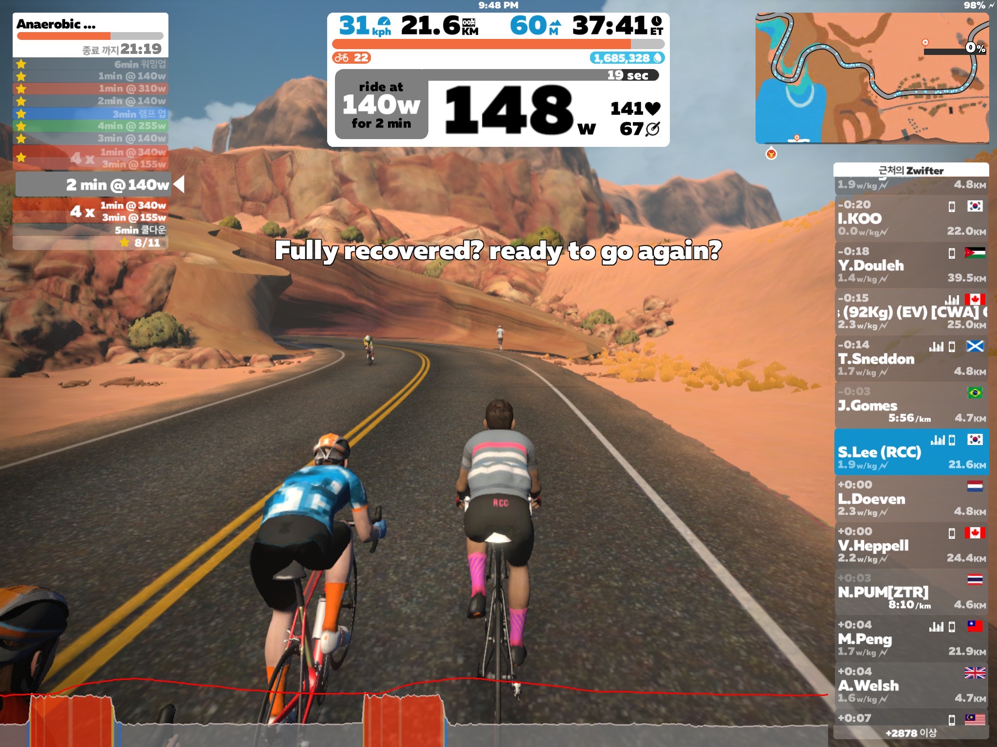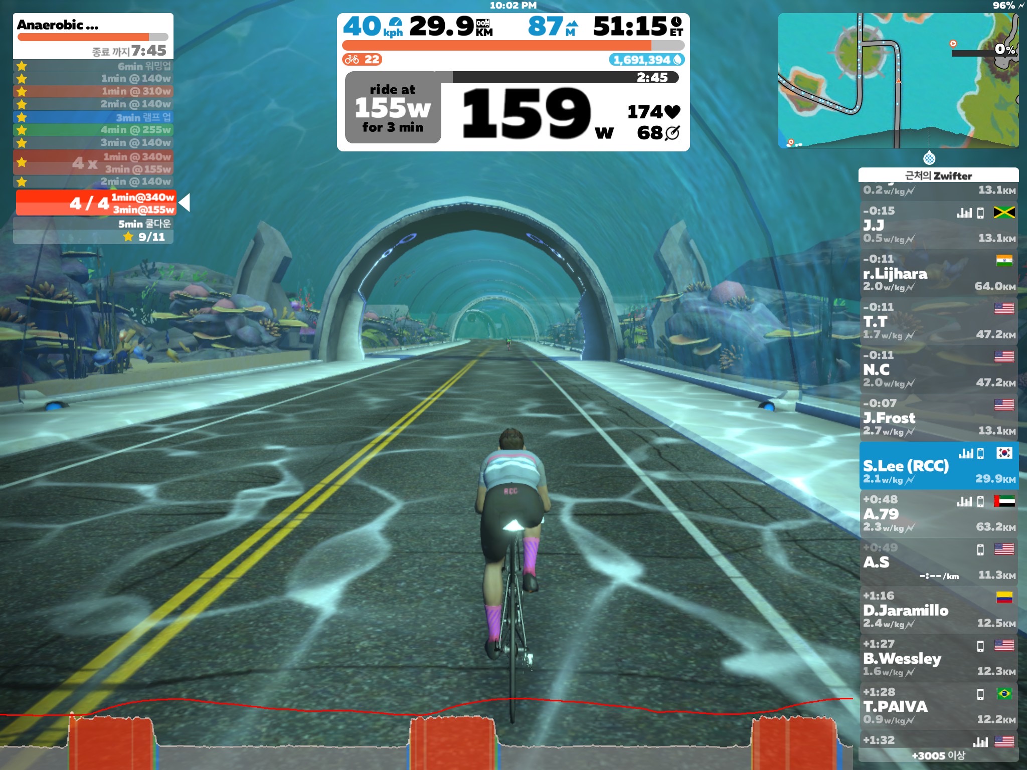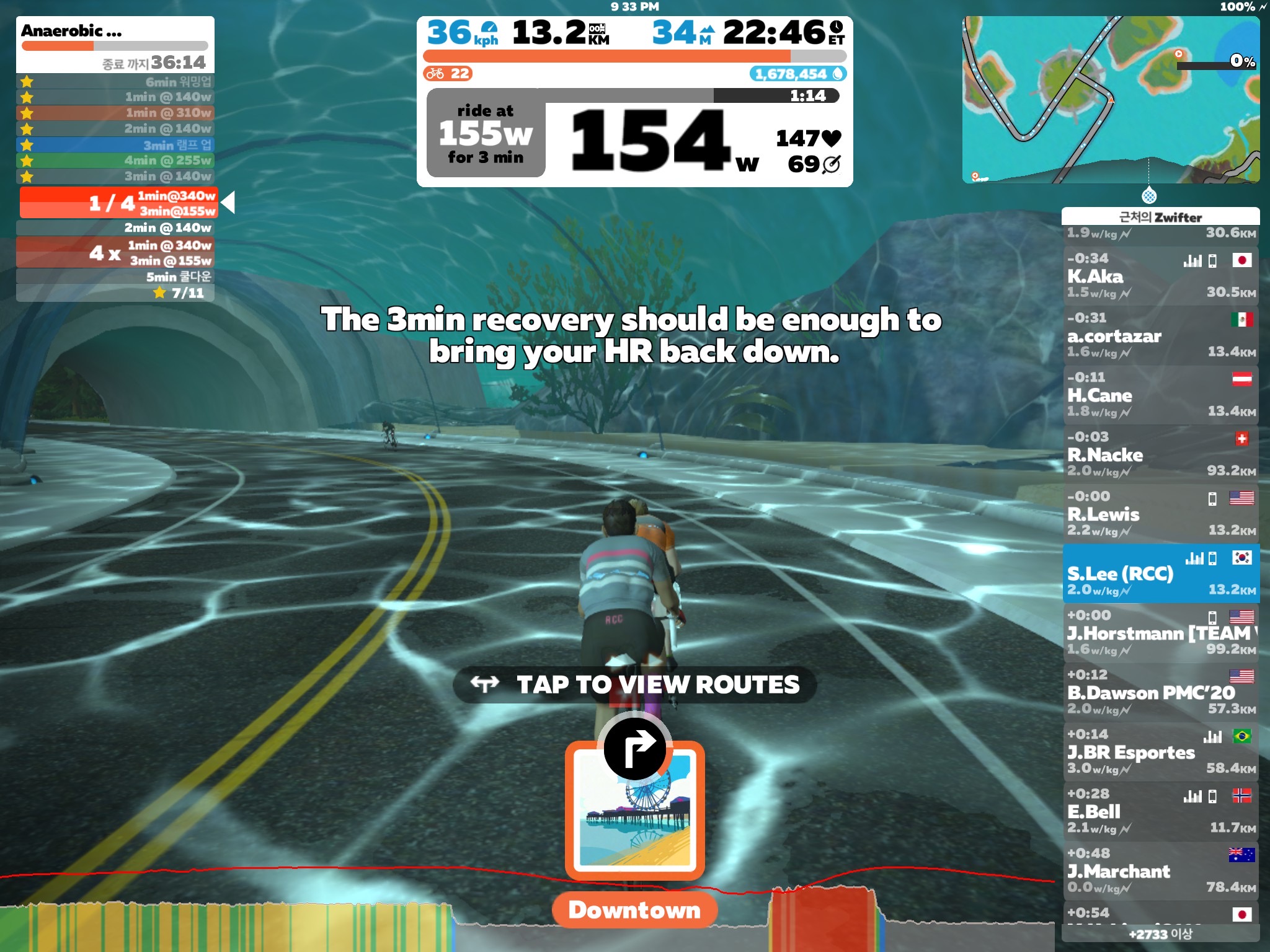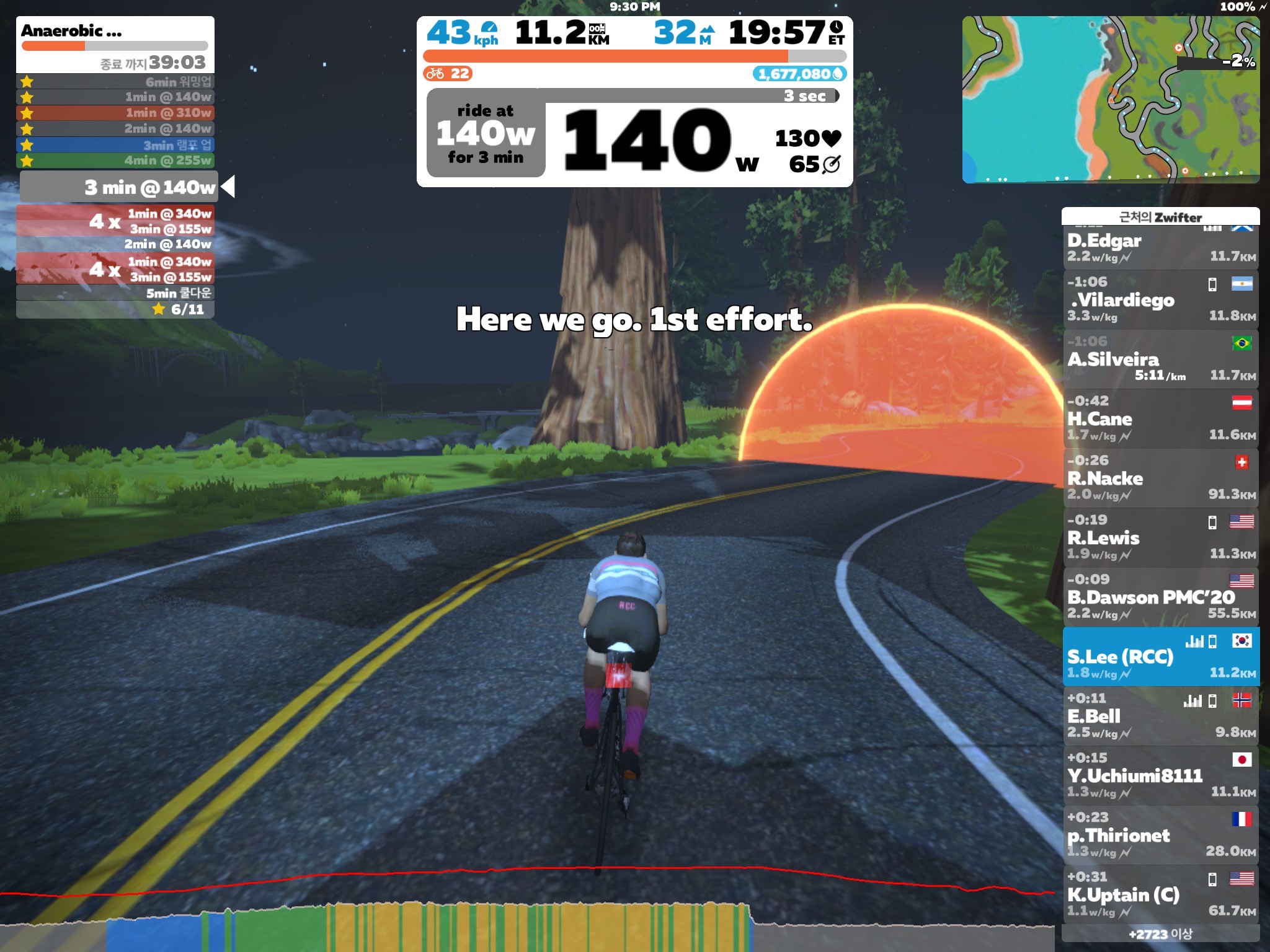 그런데 이거 인터벌 휴식이 140W가 아니라, 155W네요.