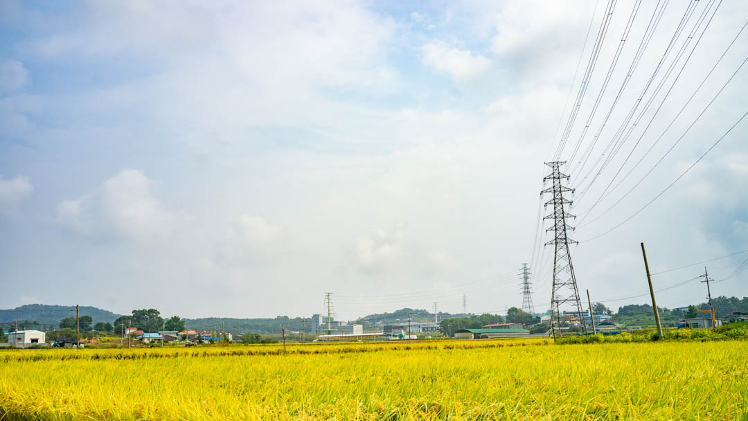 차도에서는 큰 송전탑만 보여 잘 안 보였었는데, 바로 그 뒤로 너른 논이 펼쳐져 있다.