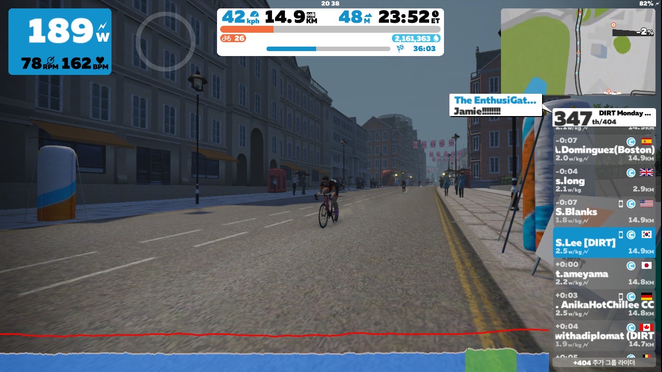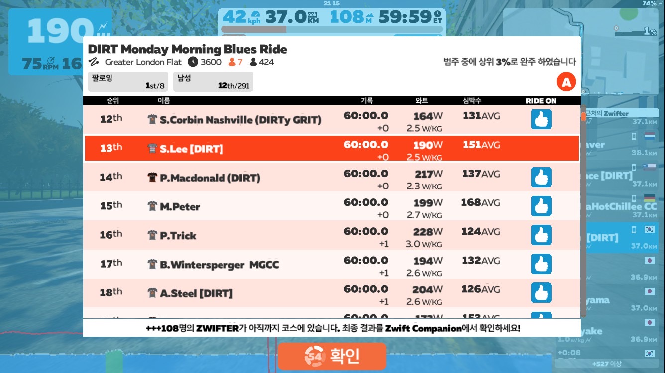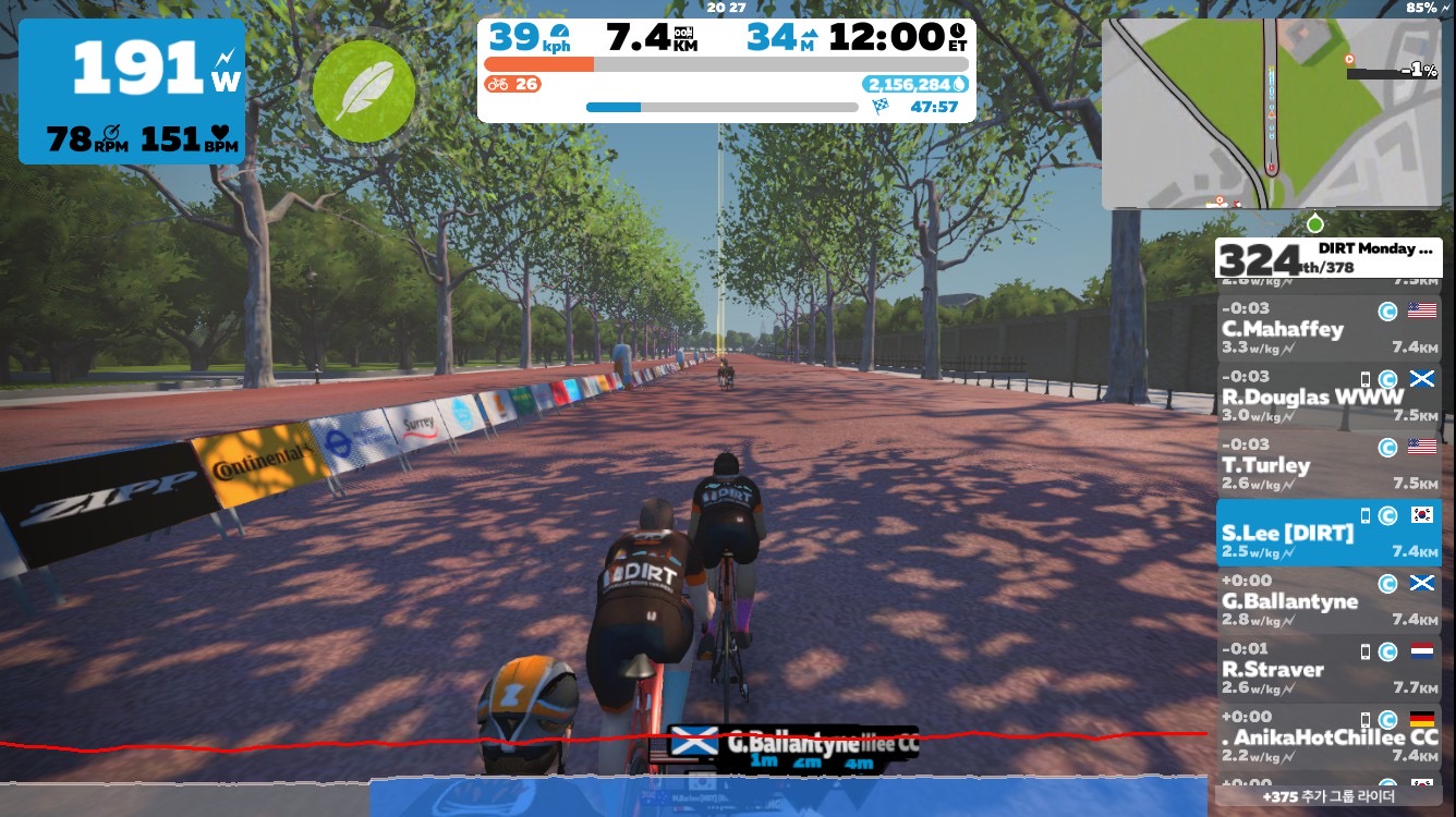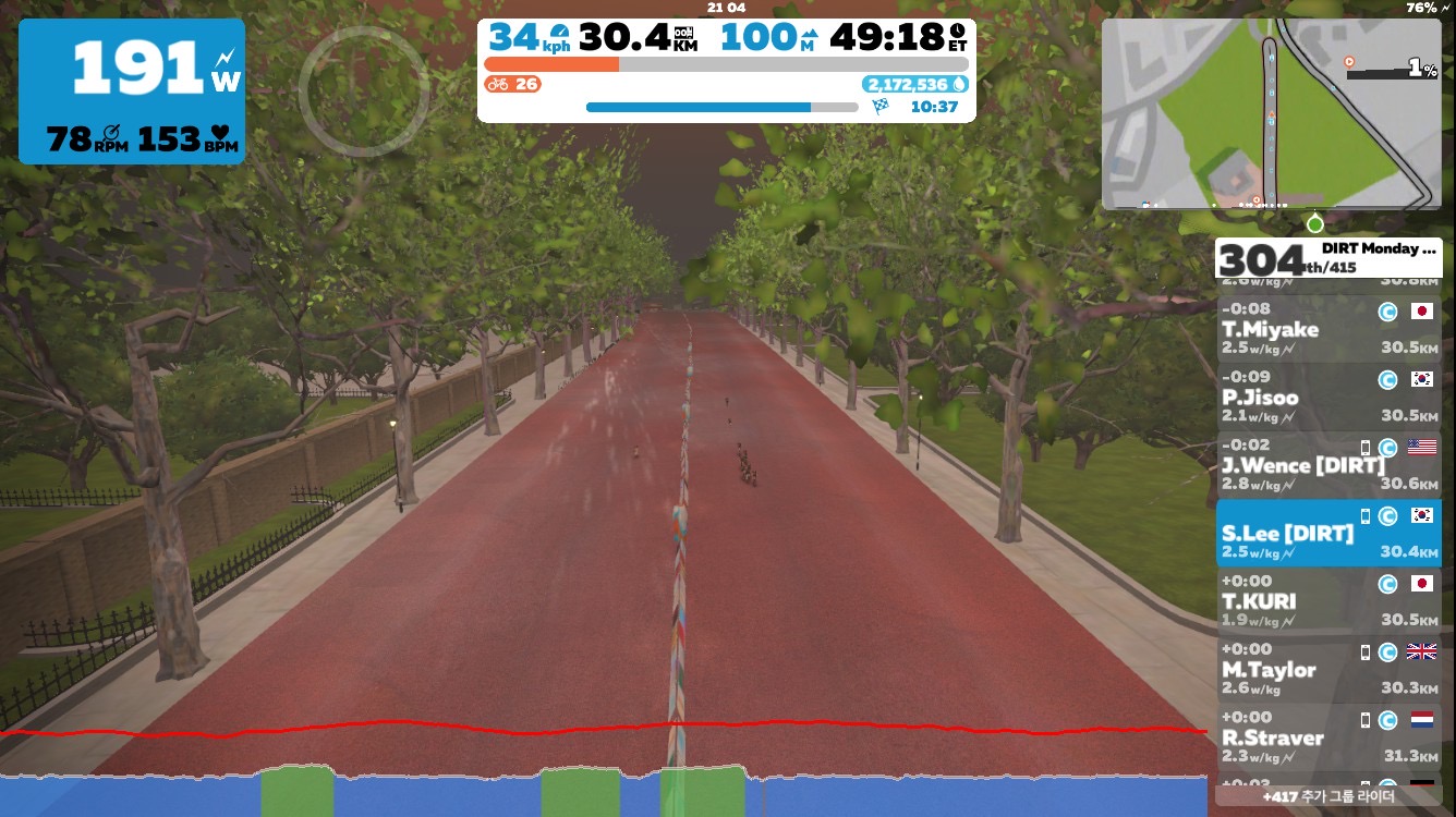 그래도 그룹 라이딩 중에서는 펠로톤 유지도, 전반적인 템포도 DIRT가 가장 만족스러워서 코스보단 팀을 따라 가게 된다.