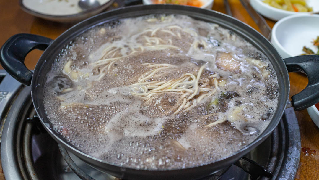 오징어나 문어같은 재료를 썩 좋아하진 않는다. 그래도 점심에 주꾸미로 대박을 친 것도 있고, 그 지역에 왔으면 향토음식 하나는 먹고 돌아가 줘야 여행을 다녀온 느낌이 드는 것도 사실이니, 찾아보던 중 '박속밀국낙지탕'을 찾게 되어 원풍식당에 들렀다.