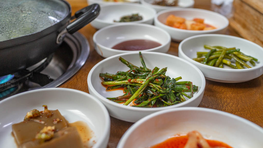 탕을 끓이다 보면 밑반찬을 내어 주시고, 이내 물이 끓기 시작하면 펄떡거리는 산낙지를 세마리 투하해주신다.