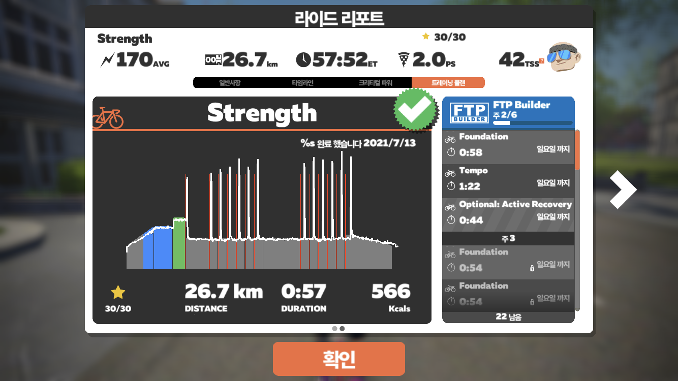 Strength는 휴식이 충분하고, 빈번해서 그런지 TSS에 비해 전혀 힘들다는 생각이 안 든다.