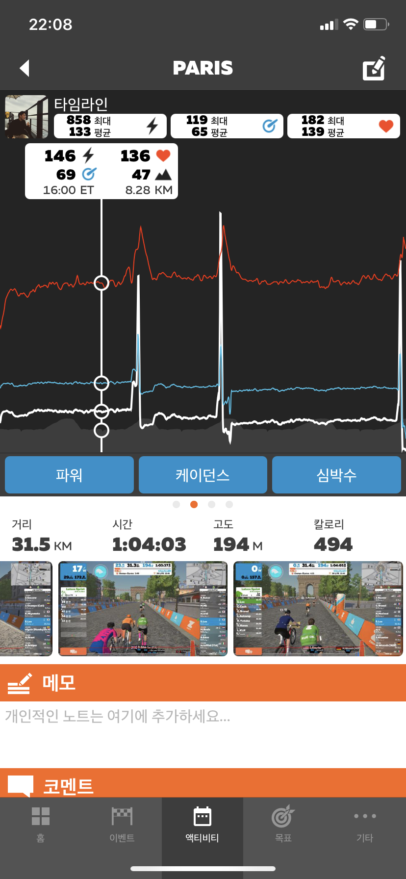 근데 오늘 리커버리... 뭐 평균 133W면 리커버리겠지? 인터벌 살짝 섞은...