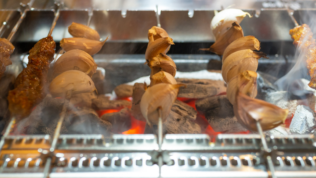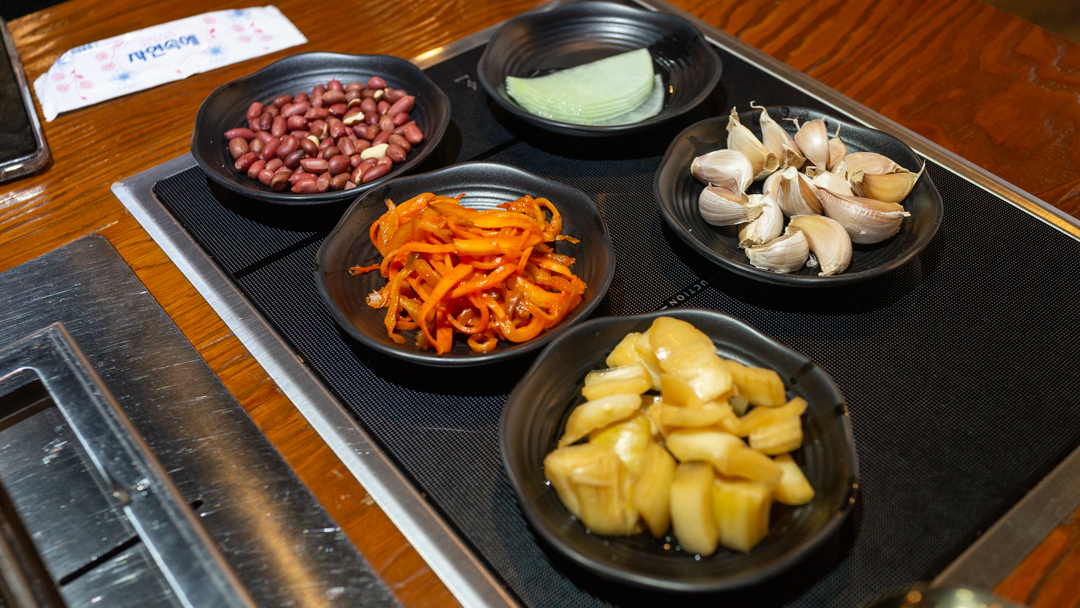 양갈비가 나올 때까지, 마늘도 열심히 굽고~