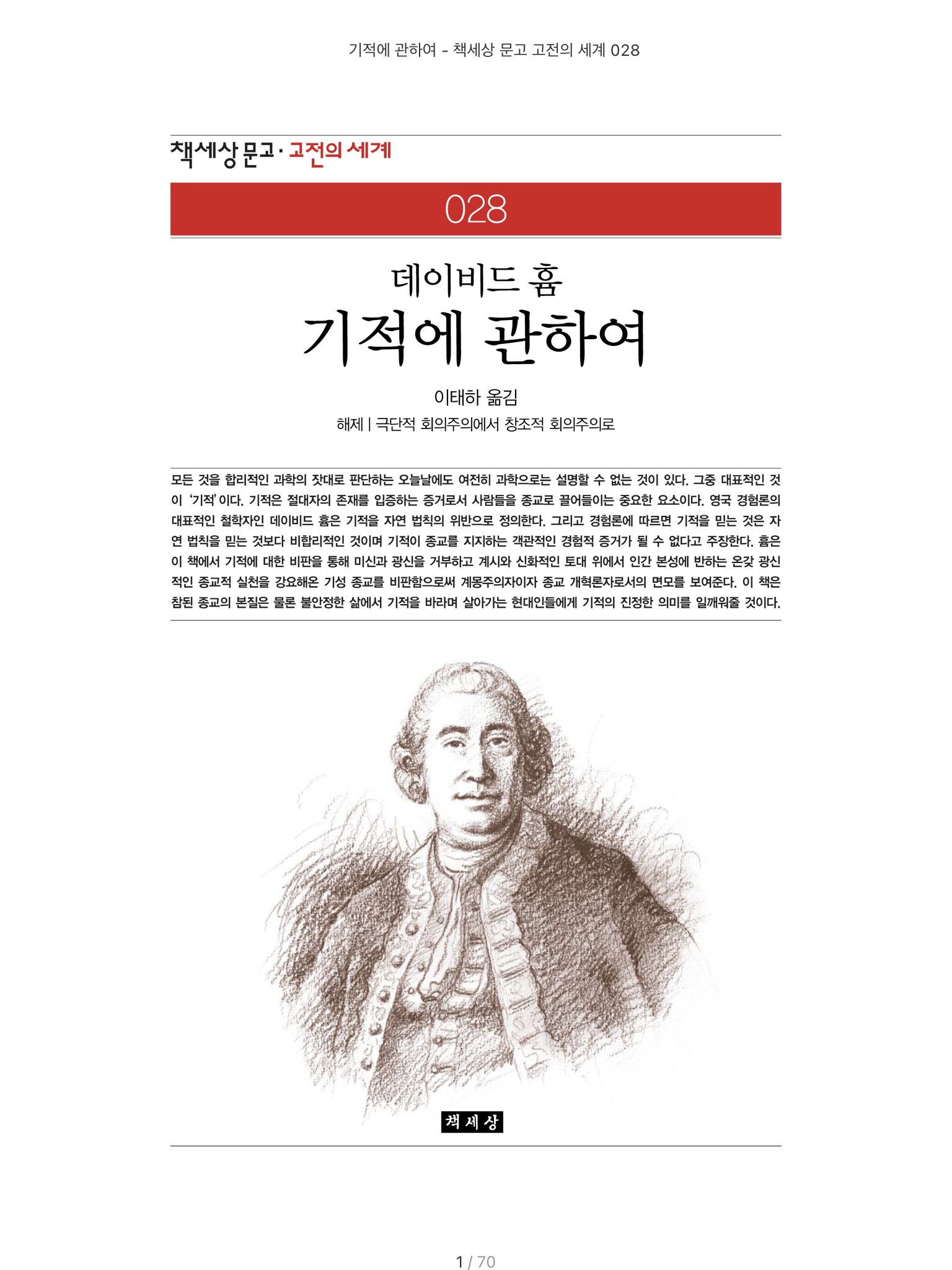 관련해서 읽을 만한 책들을 찾던 중, 흄의 저서들 중 '기적에 관하여'가 가장 흥미가 생겼네요.