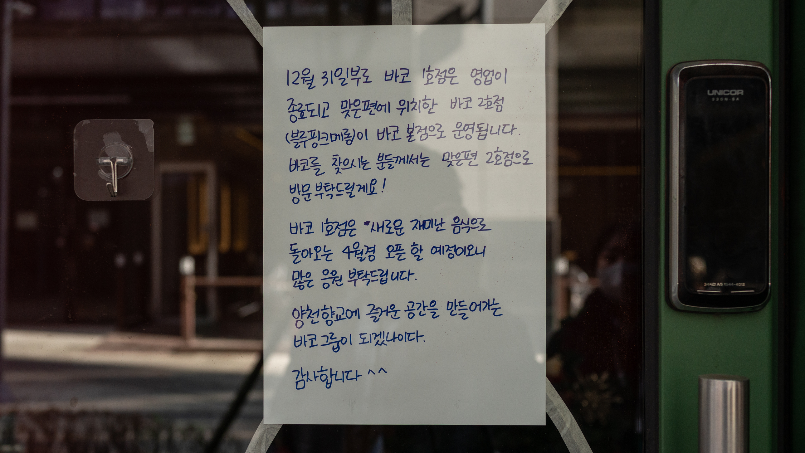 1호점은 4월까지 잠시 쉬고, 건너편 2호점이 본점 역할을 한다고 적혀있네요.
