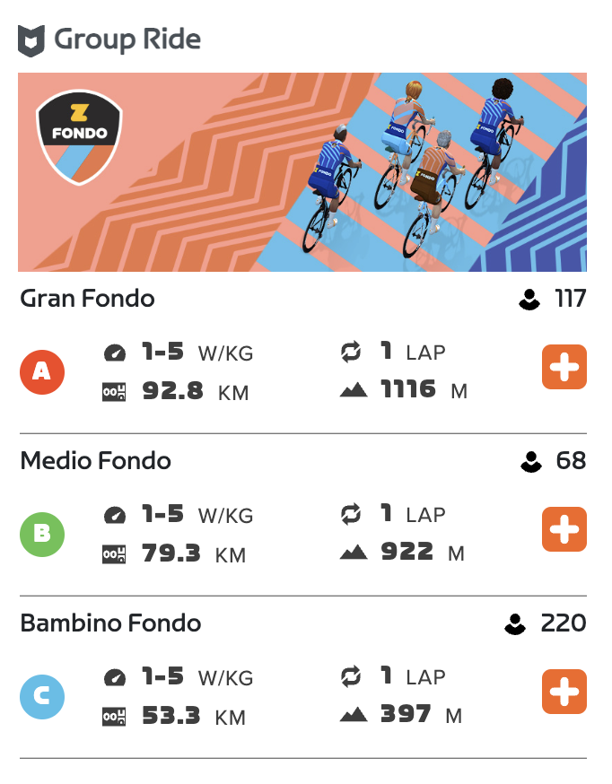 Zwift fondo의 코스별 구성은 다음과 같습니다.