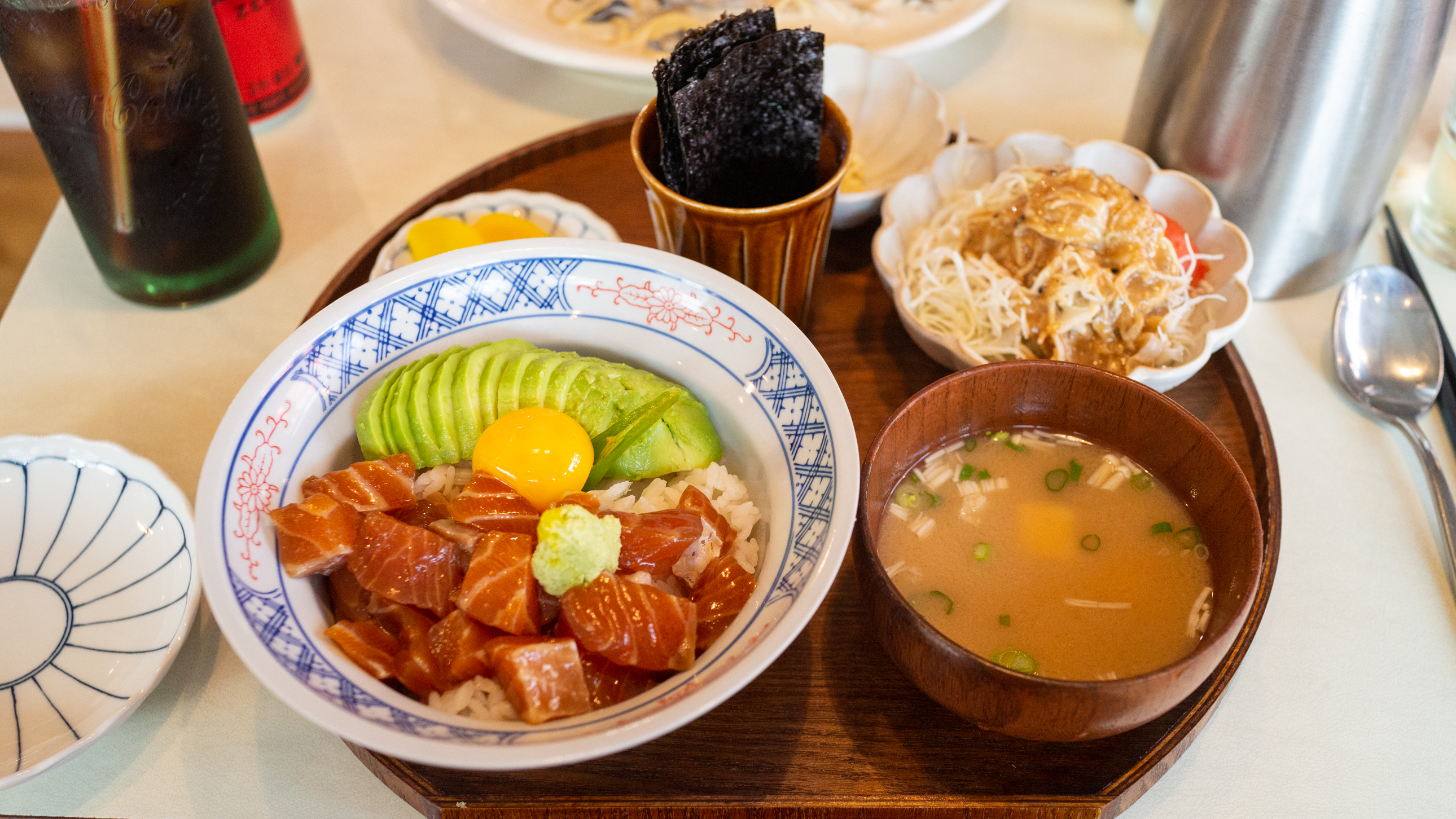 다음 제 메뉴는 아보카도 연어장 덮밥 정식.