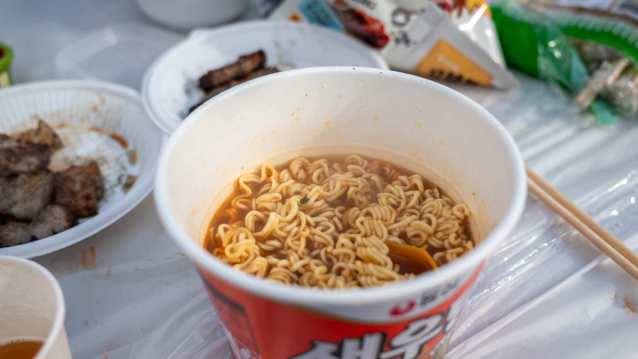 고기, 술, 과자, 라면, 이것저것 합치니 셋이 한 10만원 썼네요.