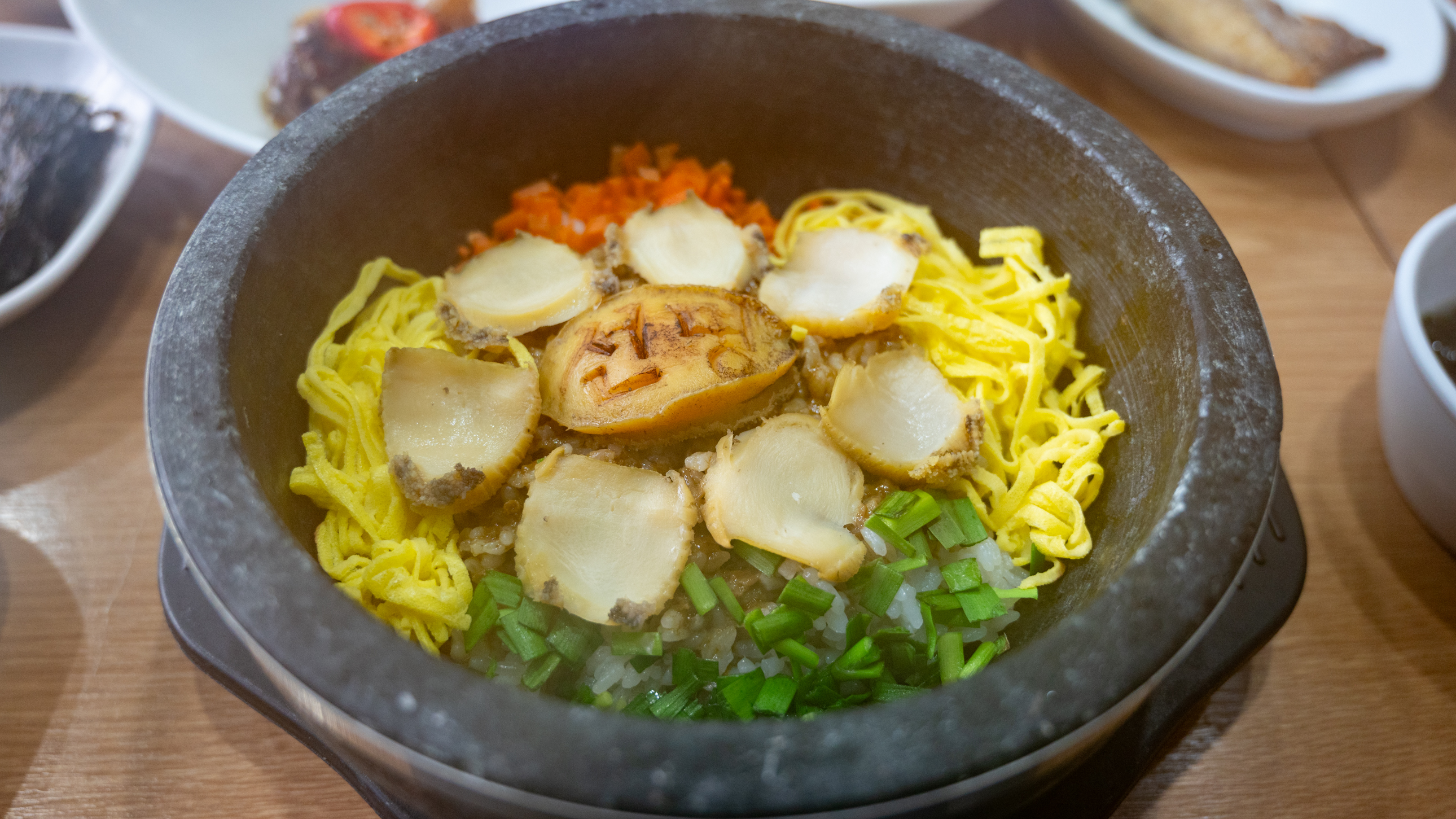 돌솥밥이고, 전복 내장도 좀 들어간 듯한 양념밥입니다. 이게 맛이 없을 수가 있나요?