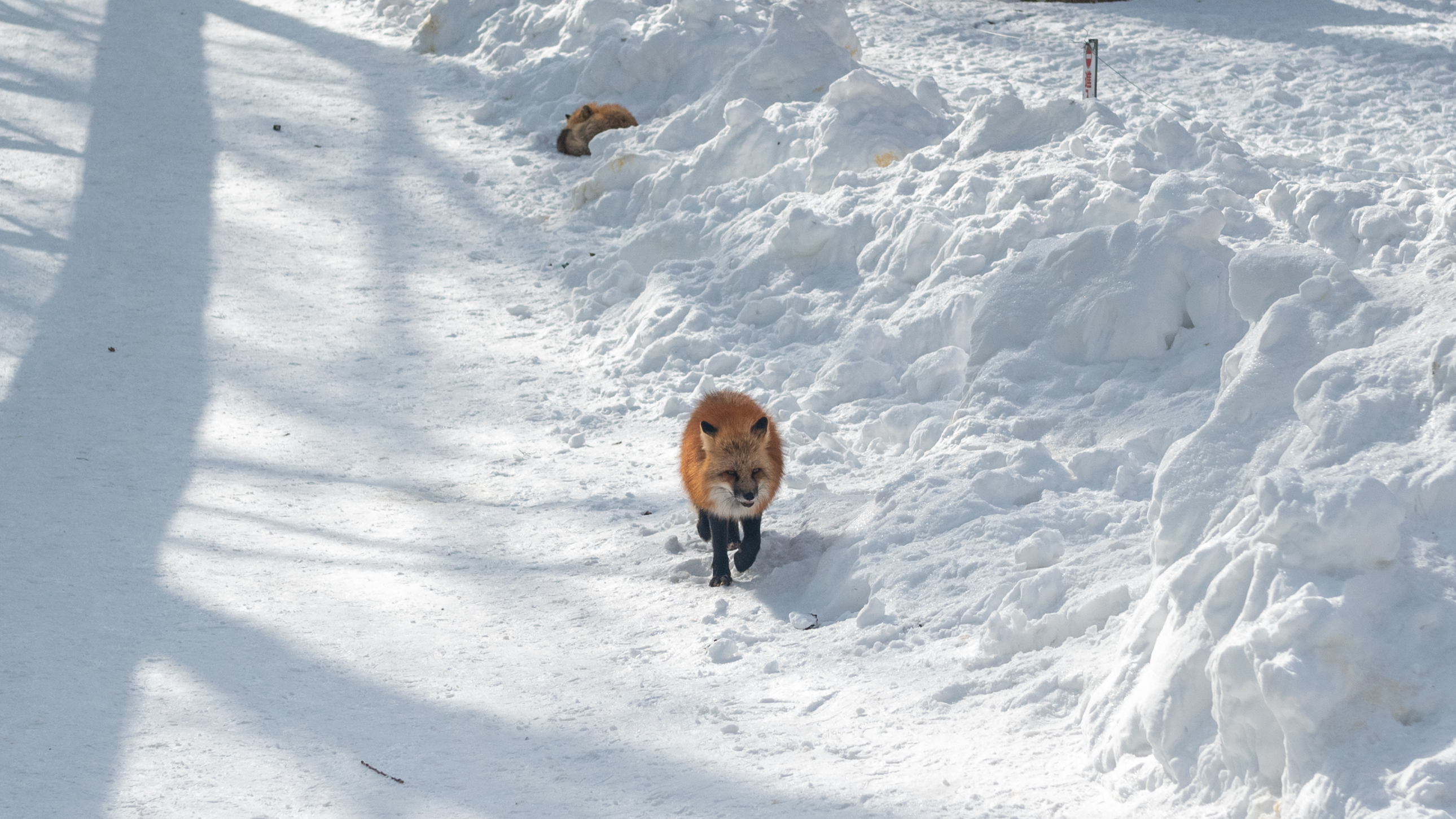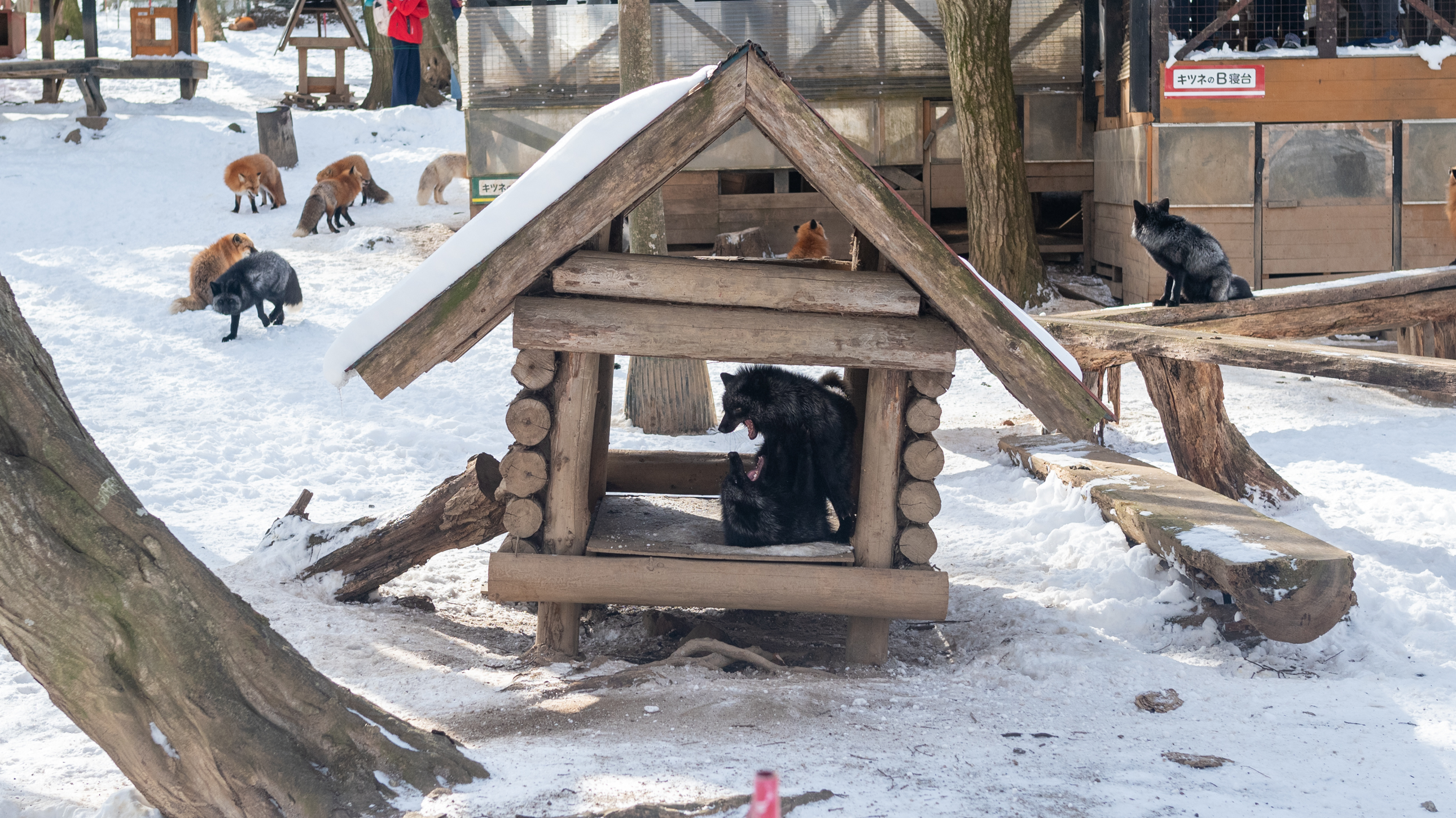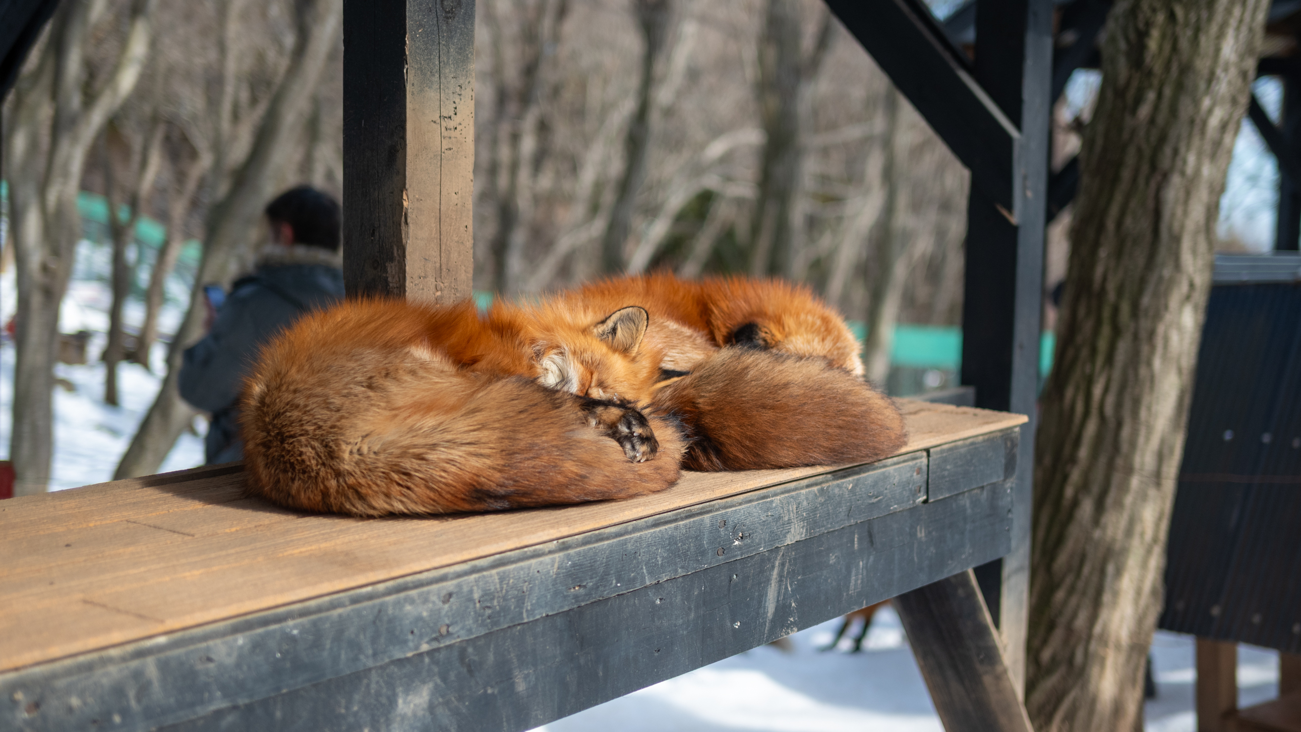 이 안에 100마리나 되는 여우가 산다는데, 꽤 넓은 시설임에도 알짜배기 자리는 몇 없는지 곳곳에서 서로 엉켜있네요.
