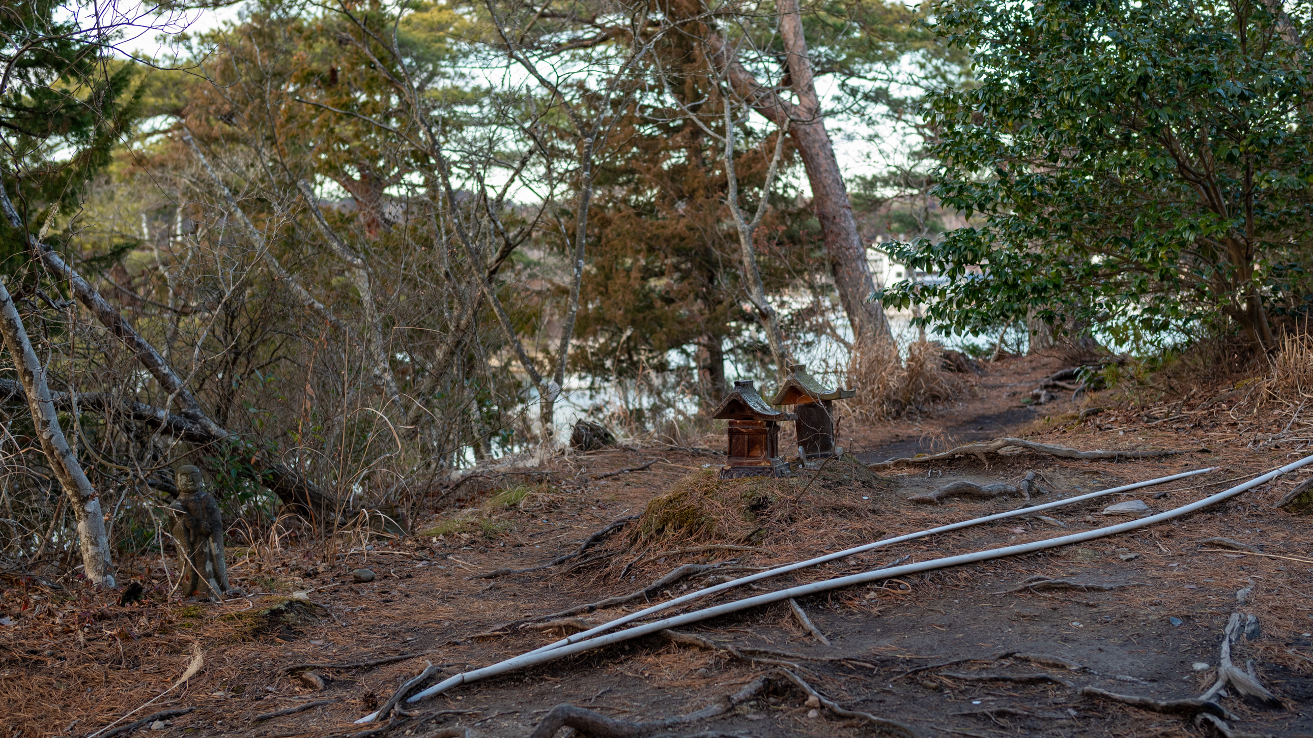 섬 안에는 좁지만, 너른 터도 있었는데 유명한 고승 겐부쓰쇼닌이 법화경 6만 권을 모두 독경한 겐부쓰도(견불당)의 흔적이라 합니다.