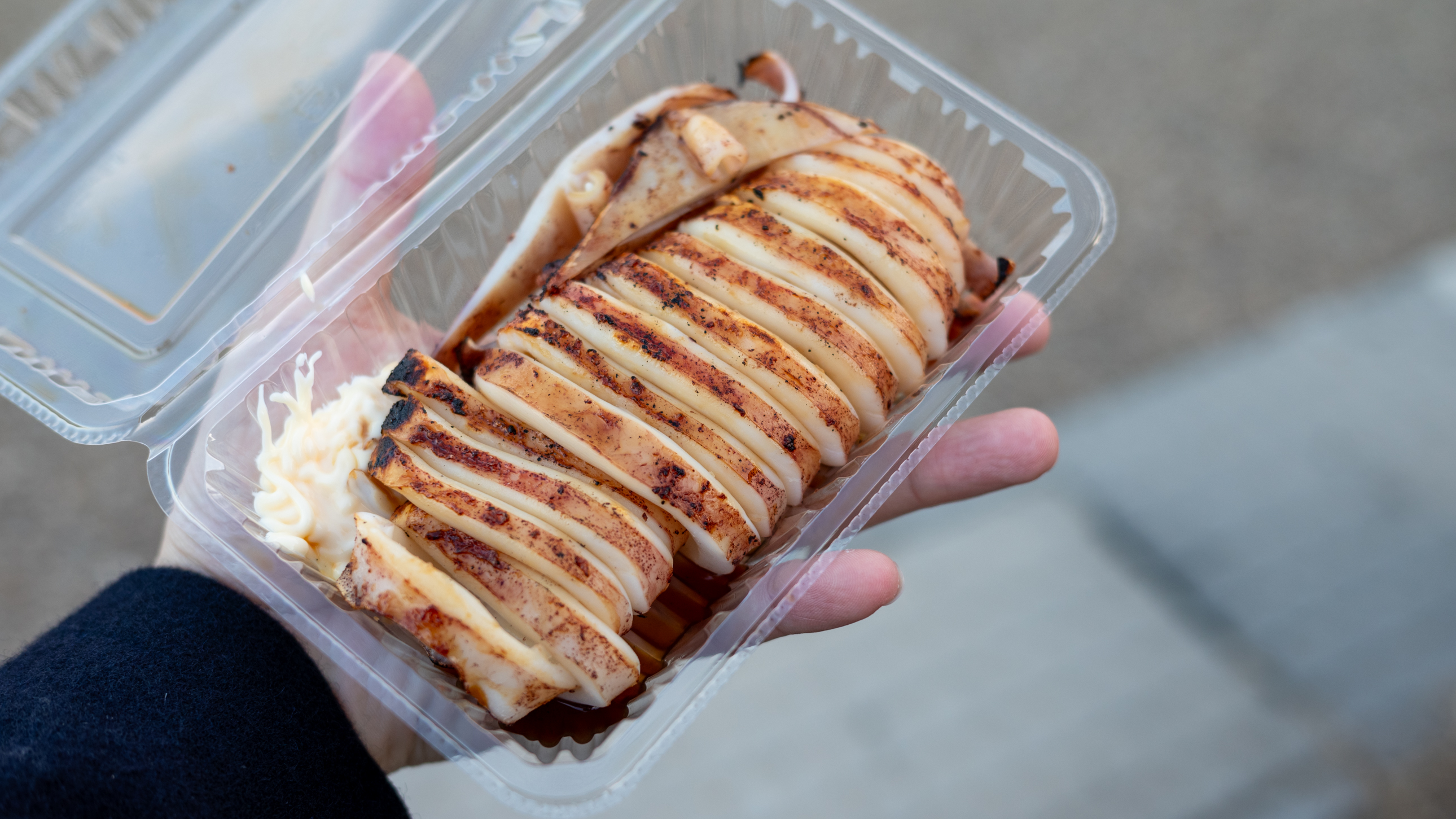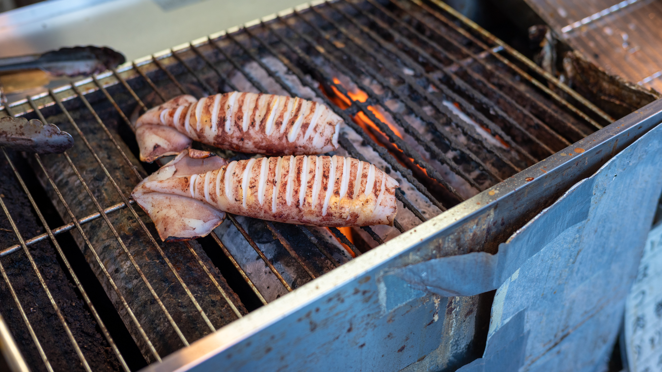시장이 반찬이기도 하지만, 갓 구워 따끈, 말랑, 쫄깃한 오징어는 확실히 별미죠.
