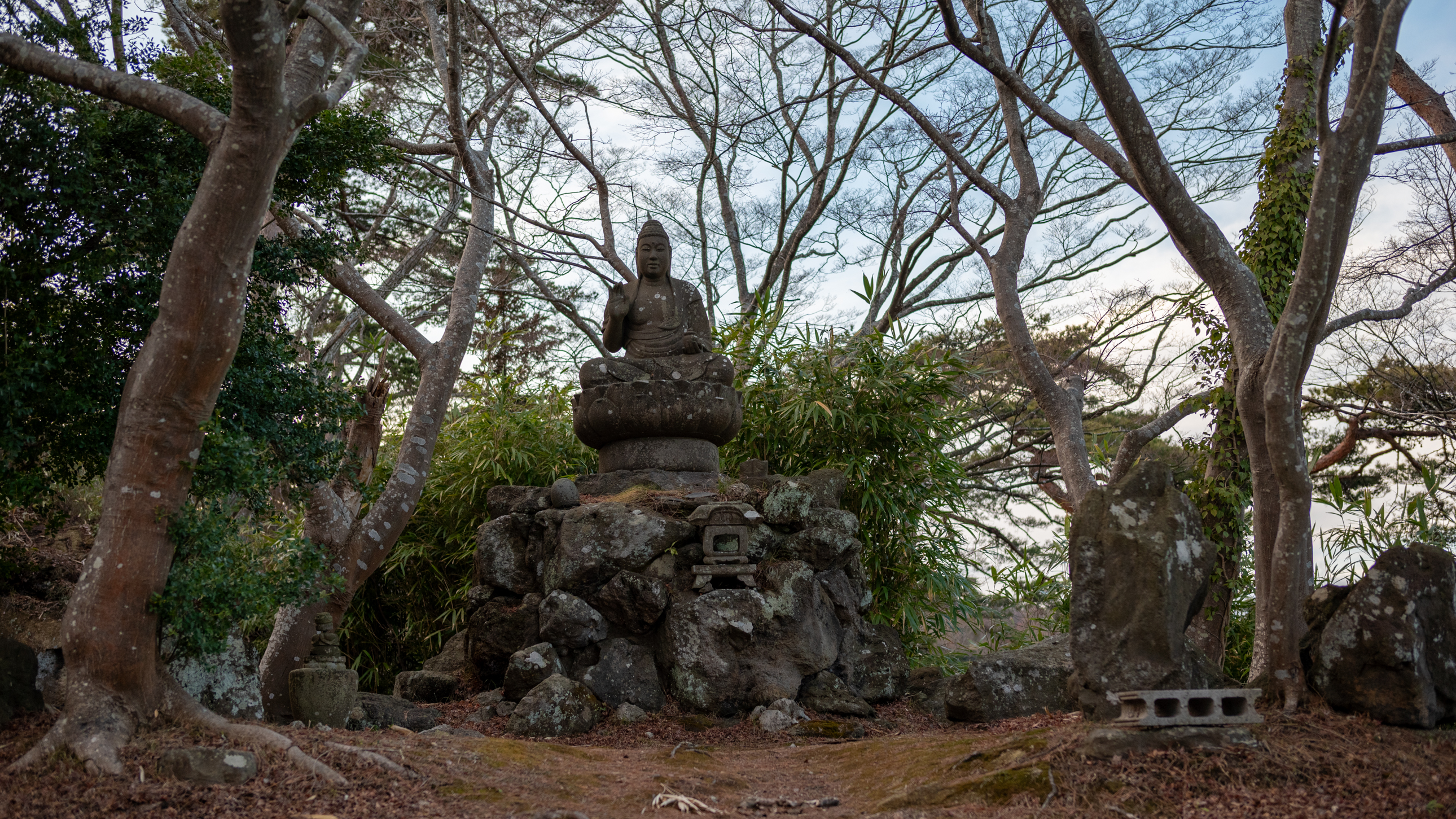 섬의 한쪽 끝에는 '라이켄'이라는 고승의 비가 있습니다. 이 작은 섬에서 무려 22년을 수행했다고 하네요.