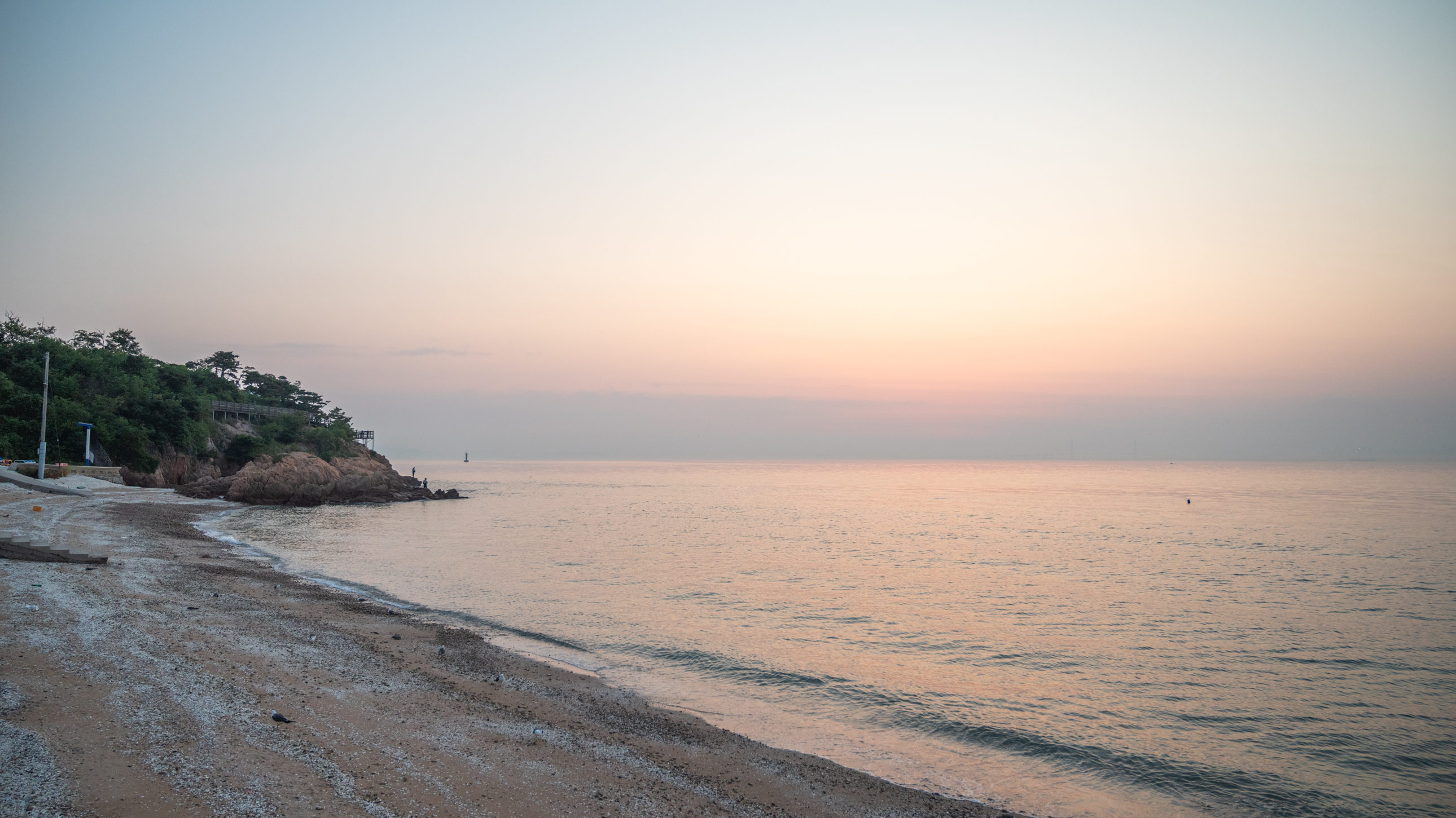 아직 해가 뜨려면 조금 남았으니, 잠깐 해변가에서 파도소리 나 들으며 쉬어야겠네요.